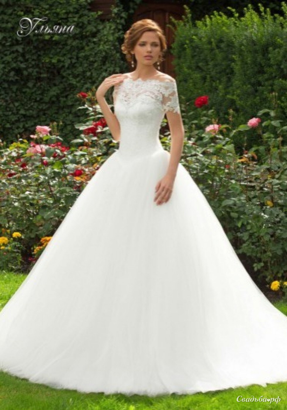 Идеальный наряд как для венчания, так и для вечернего банкета! Оригинальная отделка плеч кружевом подчеркнет вашу индивидуальность!