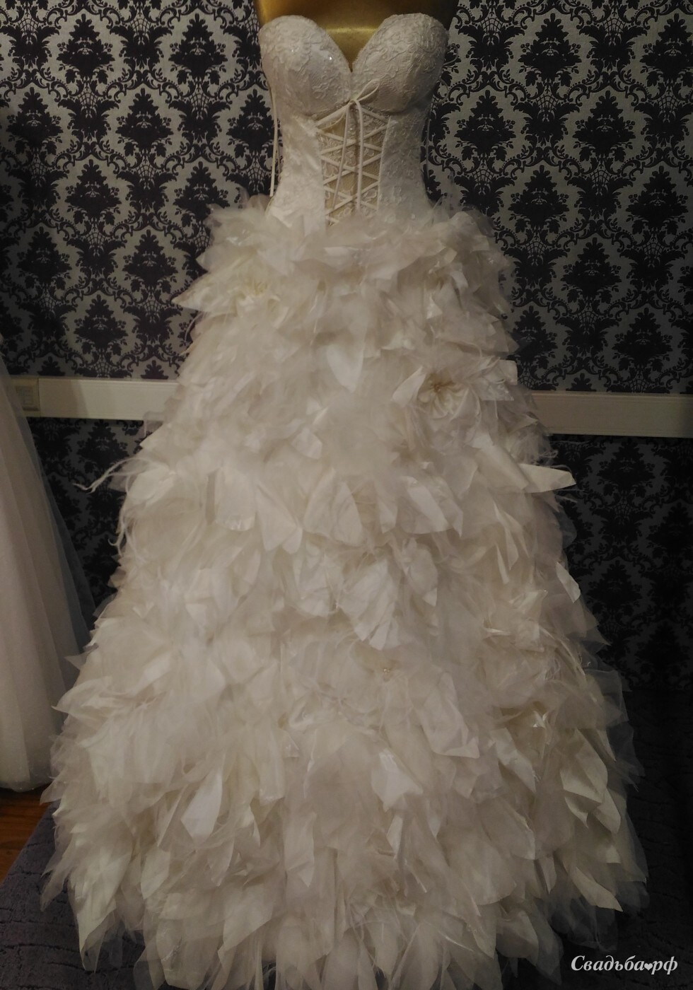 Оригинальное платье с невероятным подолом из органзы, цветов и даже перьев в сочетании с женственным кружевным корсетом!