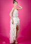 Оригинальное и нежное платье с юбкой воланами разных фактур, короткое спереди, корсет легкий кружевной на тонких лямочках.