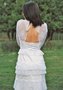 Оригинальное свадебное платье с юбкой испанкой и кружевным верхом с рукавами три четверти и открытой спинкой.