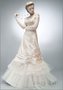 Отличительная черта свадебного платья – нежность и очень большая оригинальность. Выбрав эту модель, невеста может быть уверенна, что она будет неповторимой и очень стильной. Верх этого свадебного наряда выполнен из тонкой из тонкой ткани очень необычной текстуры, а юбка книзу резко расширяется и завершается многослойным подолом. Идеальный наряд для нежной и творческой натуры.
