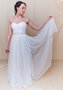 Если вы мечтаете почувствовать себя настоящей греческой богиней, то представленное свадебное платье из нежнейшей ткани придётся вам по душе. Драпированный корсет с открытой зоной декольте и расшитым вручную поясом выгодно подчёркивает талию и привлекает внимание к бюсту. Длинная юбка струится до самого пола и зрительно вытягивает силуэт.