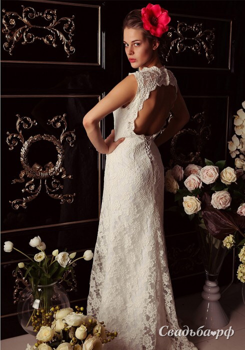 Стильное платье из французского кордового кружева было бы не столь интригующим, если бы не одна интересная деталь – открытая спина, обрамленная игривыми кружевами и плавно переходящая в облегающий силуэт с небольшим шлейфом. Длинная юбка в пол, изысканное кружево, интригующая шнуровка - все это поможет Вам в создании очаровательного образа прекрасной леди.