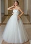 Нежное свадебное платье с пышной фатиновой юбкой, украшенной отдельными элементами кордового кружева. Лиф полностью задрапирован и также покрыт кордовым кружевом. Линия талии выделена широким декоративным поясом из бисера и бусин. По-королевски роскошная, пышная юбка идеально дополняет этот изысканный и утончённый свадебный образ.