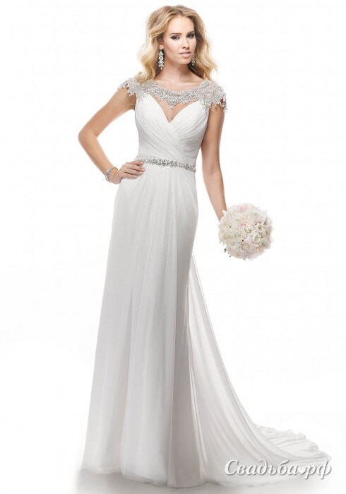 Для невест, предпочитающих эпоху Гэтсби, это платье - идеальный вариант. Струящаяся ткань легко повторяет линии Вашей фигуры, удобный фасон придаст легкость образу. Богато украшенная спина будет приковывать к себе все взгляды. А нежный поясок с кристаллами Swarovski выгодно подчеркнет талию.