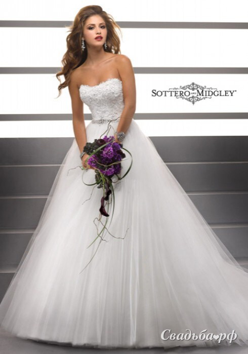 Такое пышное и такое воздушное. Это платье Вашей мечты. Корсет с открытым фигурным лифом украшен изысканной вышивкой и кристаллами Swarovski. Тонкий поясок из кристаллов изящно подчеркивает линию талии. Нежная и легкая юбка похожа на парящее облако в небесах. Она окутывает ножки невесты и делает образ ещё более романтичным и изысканным.