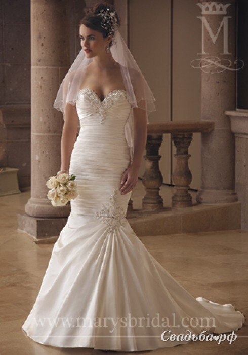 Шикарное, атласное платье-трансформер. Идеальный вариант для практичной невесты. Отблистав официальную часть церемонии в роскошном атласном платье силуэта русалка, платье легко превращается в элегантное маленькое платье по фигуре. Вышивка из кристаллов, подчеркивает богатство переливающегося атласа. Вырез на груди в форме сердечка, придаст образу сексуальность.