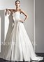 Изящное классическое платье, исполненное в атласе. Роскошная гладкая ткань выглядит невероятно торжественно! Легкая драпировка эффектно украшает корсет с прямым открытым лифом. Ручная вышивка из кристаллов, жемчуга и бисера, расположенная на боку в центре драпировки, делает этот свадебный образ ещё более изысканным и романтичным.