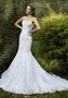 Эффектное свадебное платье силуэта русалка покрыто нежной французской сеткой и кордовым кружевом. Соблазнительный корсет с открытой зоной декольте и драпировкой под грудью приковывает взгляды в бюсту прекрасной невесты. От уровня колен юбка расширяется и постепенно переходит в шлейф. Платье дополнено удобной шнуровкой на спинке.