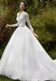 Такие свадебные платья при всей видимой скромности очень выгодно подчеркивают красоту невесты! Объемная юбка из мягкого ватина и нежнейшее трикотажное кружево придают образу королевский шик. Скромная зона декольте и длинные рукава из ажурного кружева подчеркнут Вашу скромность и очарование. Яркий акцент - эффектный пояс из бисера.