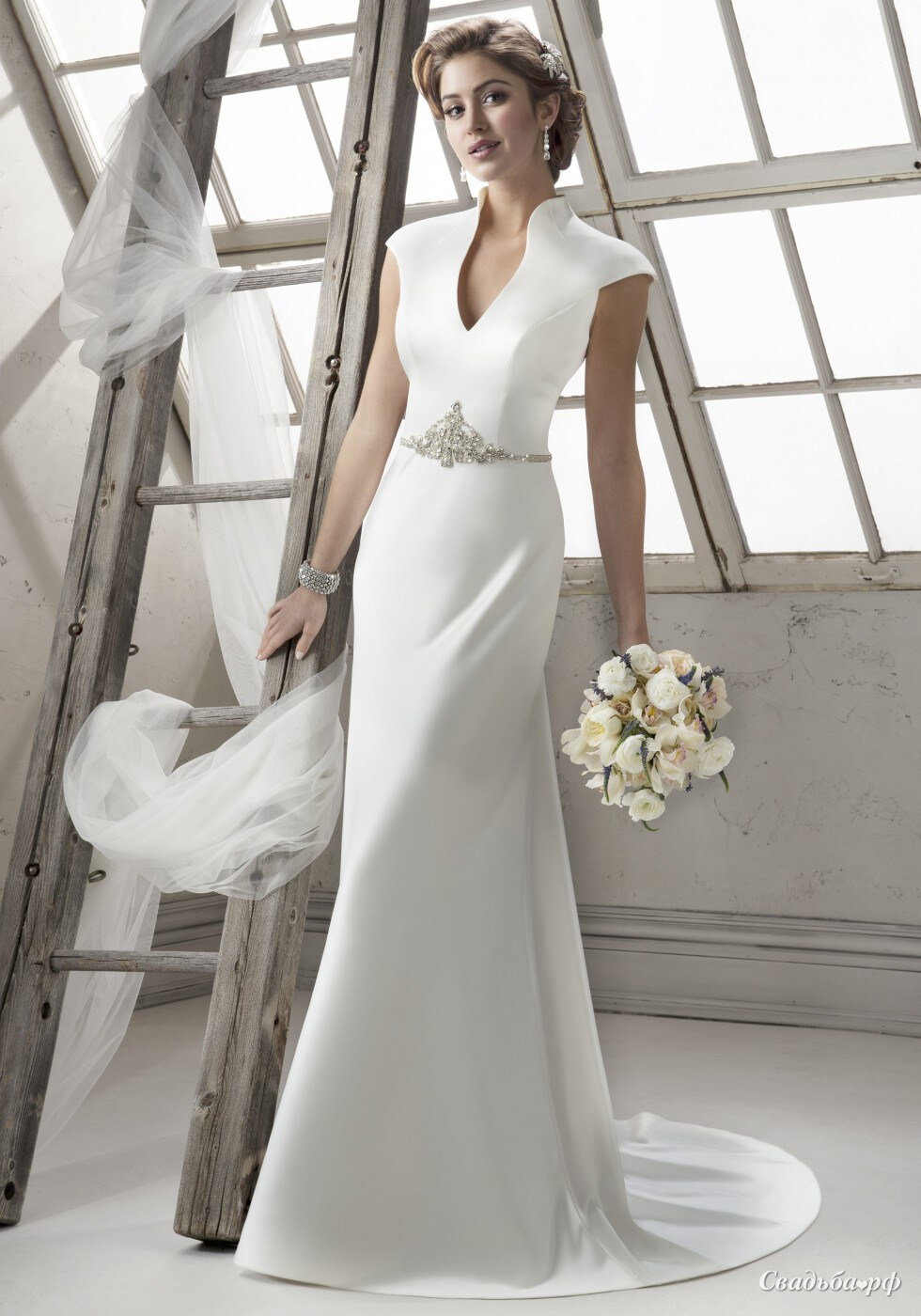 Элегантное, классическое платье из тонкого атласа. Шикарный пояс из кристаллов Swarovski идеально подчеркнет изящную талию. Круглый вырез на спине придает платью изюминку и изысканность.