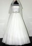 Такое легкое и изящное, свадебное платье А-силуэта. Выполнено из тонкого современного материала еврофатин. Тонкая сеточка закрывает зону декольте и полукругом заканчивается вырезом на спине. Съёмный пояс выбирается по вашему желанию и может быть выбран из любой гаммы.
