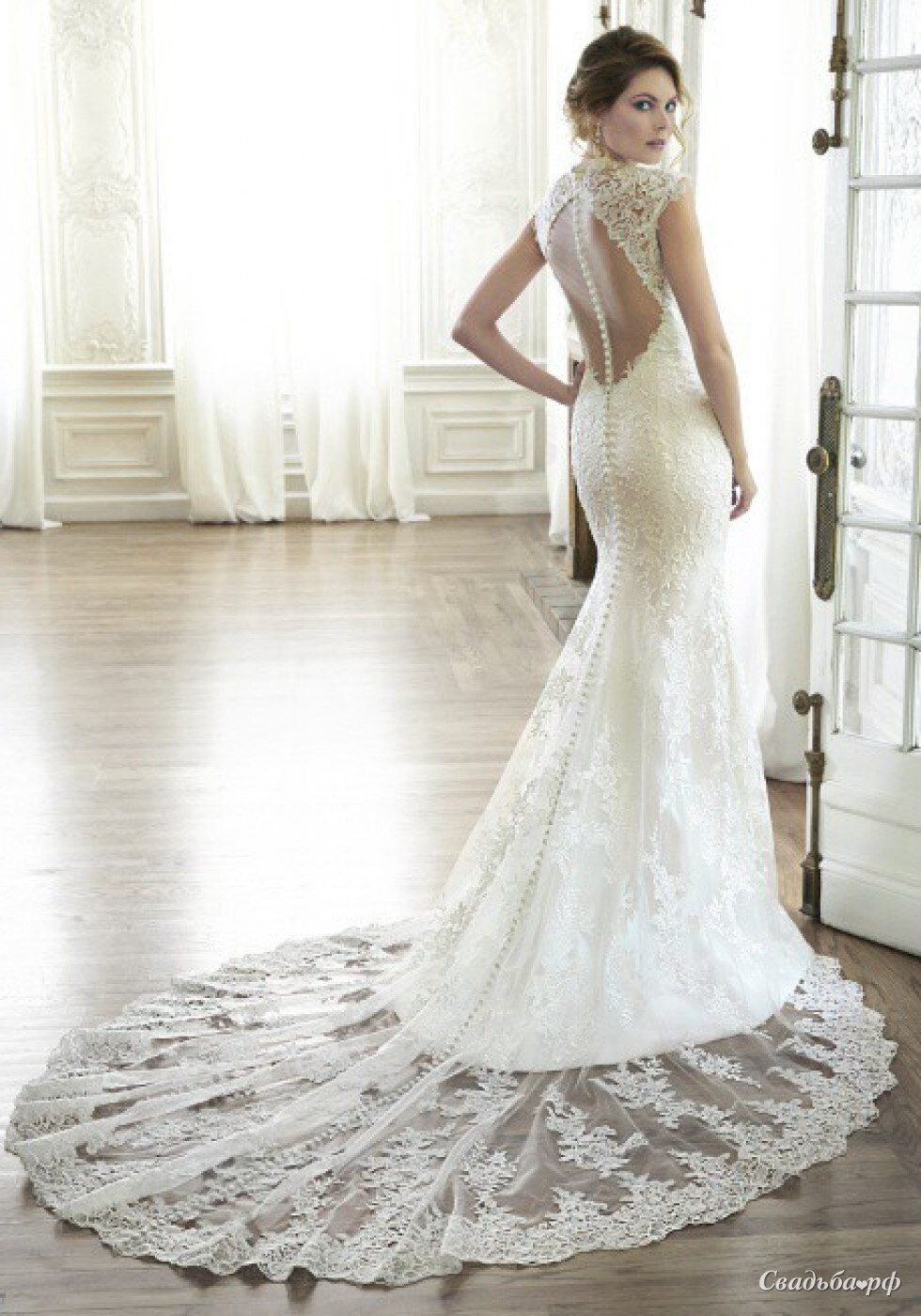 Вы хотели блистать на вашей свадьбе?!В этом платье вы это сделаете на 100%! Изумительной красоты платье прямого силуэта от американского дизайнера Msggie Sottero. Словно шедевр, это платье выполнено из элегантного кружева ручной работы, которое украшает шикарный шлейф платья и подчеркивает мягкий силуэт спинки. По всей длине платье украшается маленькими пуговичками, что несомненно говорит об утонченном вкусе и роскоши наряда.