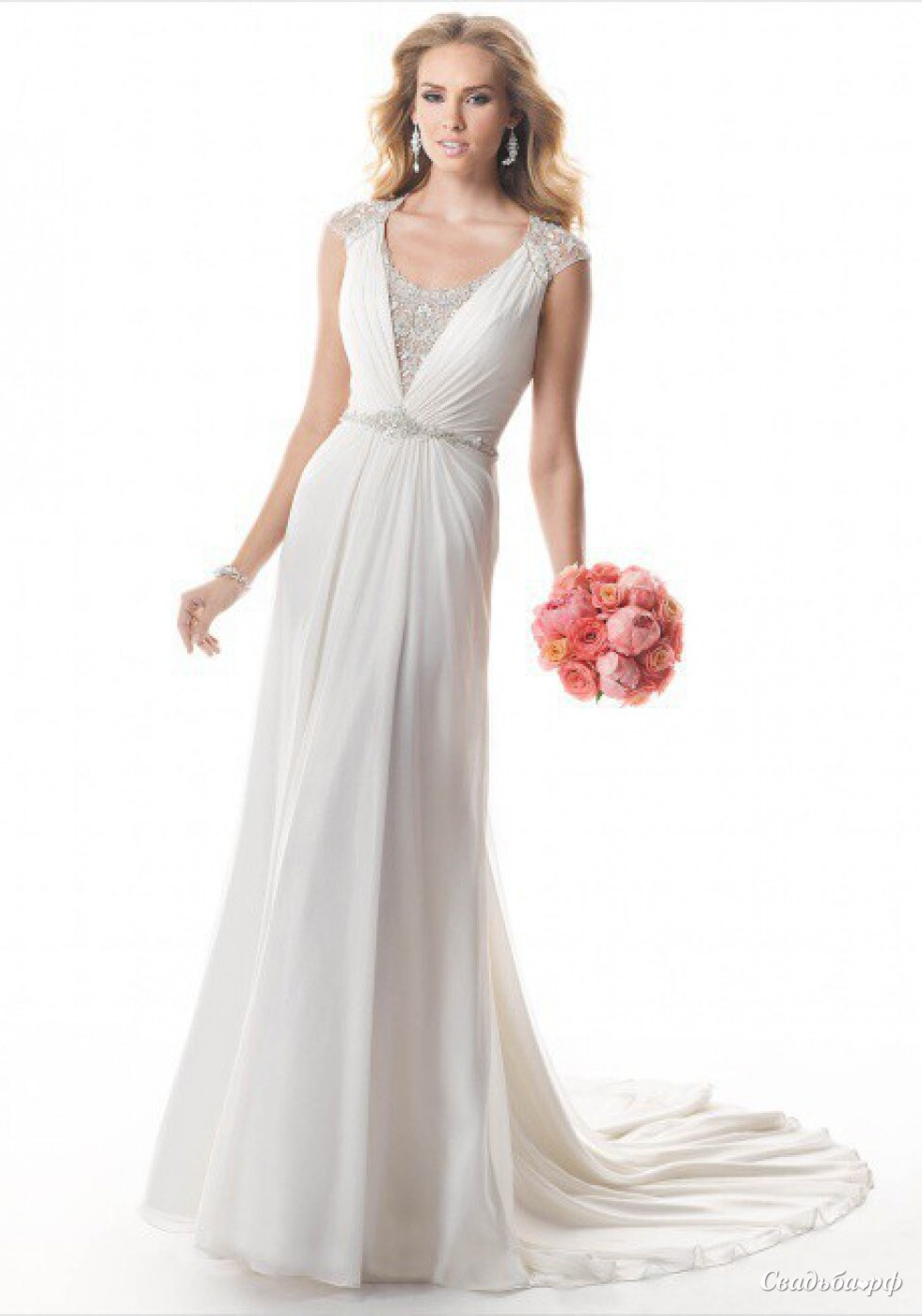 Изумительной красоты платье в греческом стиле, выполнено из тонкого шифона. В таком платье будет комфортно провести торжественный день и на природе и в ресторане. Изюминкой платья является расшитая кристаллами Swarovski спина и V-образный вырез. В таком платье вы точно не останетесь не заметной.