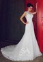 Нежное силуэтное прямое платье с шикарным кружевным шлейфом. Глубокий вырез на спине закрыт тончайшим фатином и декорирован гипюровым кружевом с цветочным орнаментом, имитирующим бретели. Линии горловины и плеча украшены кристаллами. Платье застегивается на молнию и изящные сатиновые пуговки. Прозрачный гипюровый слой платья придает силуэту легкость и романтичную загадочность.