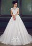 Оригинальное пышное платье бального силуэта с короткими рукавчиками и благородным шлейфом. Сатиновая основа цвета румян покрыта слоем тончайшего фатина цвета айвори, расшитым крупным гипюровым кружевом. Юбка перехвачена блестящим сатиновым поясом в тон основе. Прозрачный верхний слой лифа с кружевными аппликациями и вырезом-лодочкой скрывает бюстье в форме сердца.