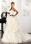Шикарный фасон этого свадебного платья заставит обратить на себя взгляды всех присутствующих! Юбка в форме розы идеально сочетается с гладким корсетом, асимметричным на одну сторону. Несмотря на пышность юбки, платье очень легкое и невесомое, так как выполнено из нежной ткани органза.