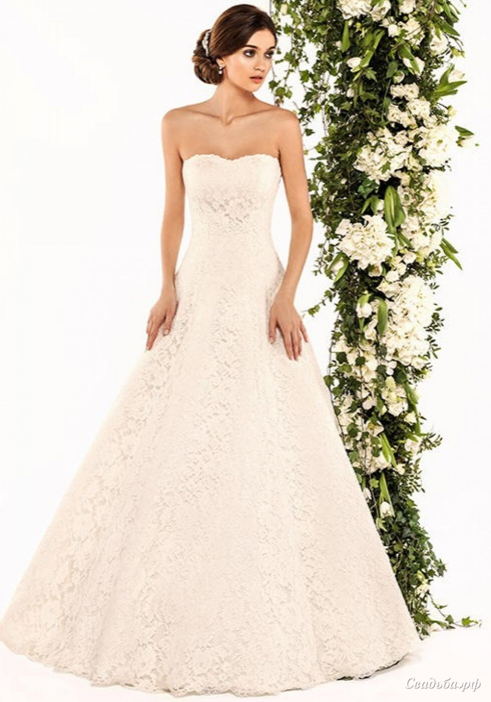 Классическое свадебное платье А-силуэта. Платье изготовлено из тончайшего гипюра. Роскошное и богатое. Эта модель свадебного наряда для невест с потрясающим вкусом, предпочитающих классику.