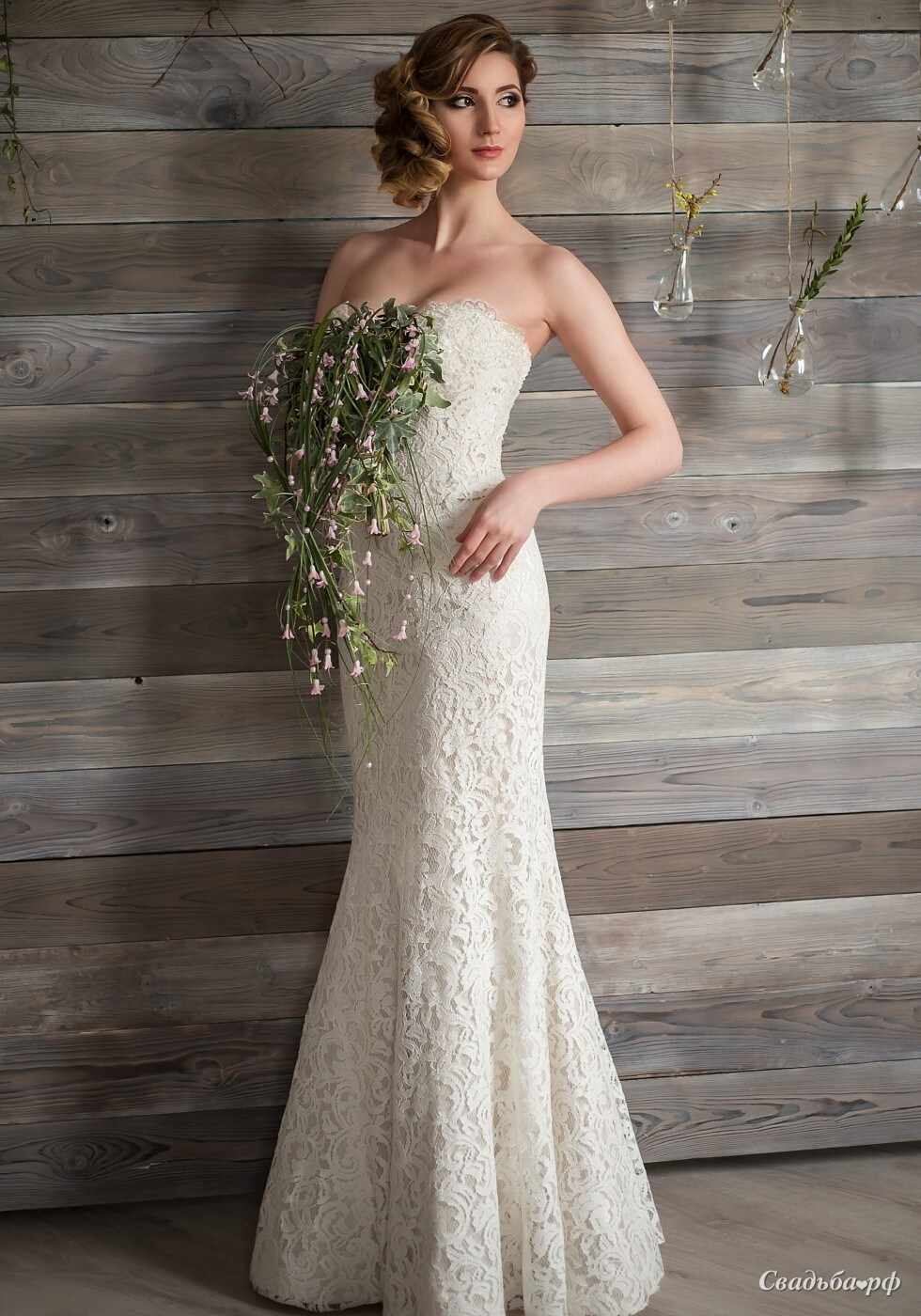 Великолепное платье силуэта русалка. Внутренний слой платья цвета капучино, сверху его покрывает цельное, бесшовное кружево, цвета айвори. Корсет может быть нарочито открытым либо закрыт вставкой.