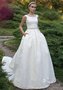 Эта модель платья идеальна для невест, которые любят атлас и кружево и не знают как это совместить. Дизайнеры все продумали за вас и создали это шедевральное платье А-силуэта. Модель очень элегантная и утонченная. Интересным решением деталей стал пояс из страз и карманы на юбке.
