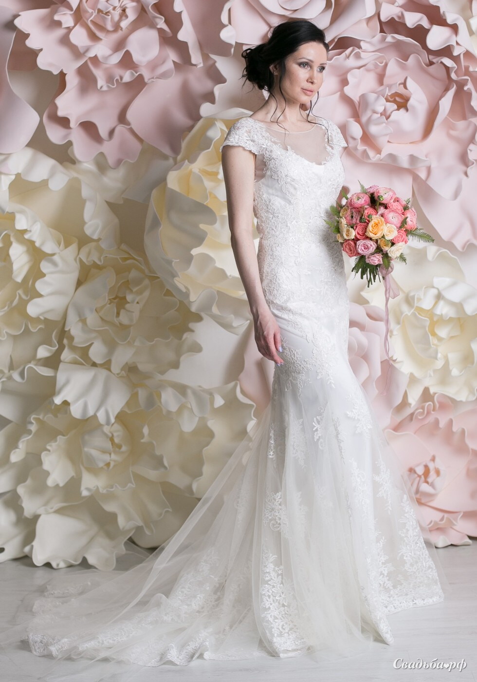 Кружевное, элегантное платье А-силуэта. Спинка платья прозрачная, с маленькими пуговичками по всей длине платья.