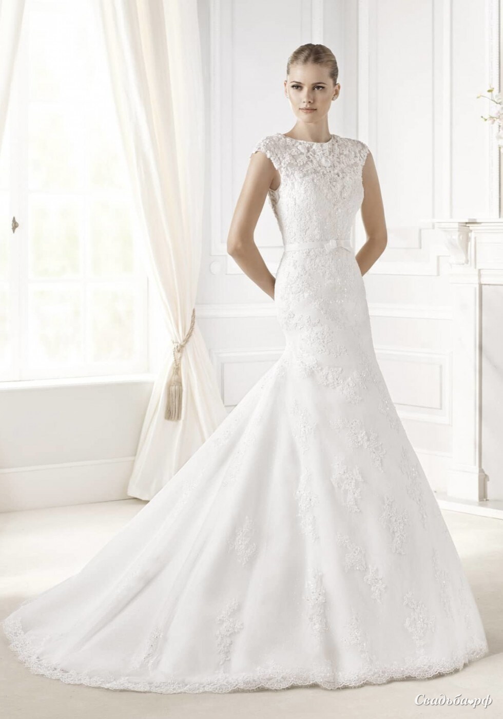 Настоящее брендовое платье торговой марки Pronovias по доступным ценам! Утонченное и аристократичное платье с прямым верхом и юбкой А-силуэта. Благодаря идеальной посадке и красивому кружеву, оно не может не радовать глаз невесты и окружающих.