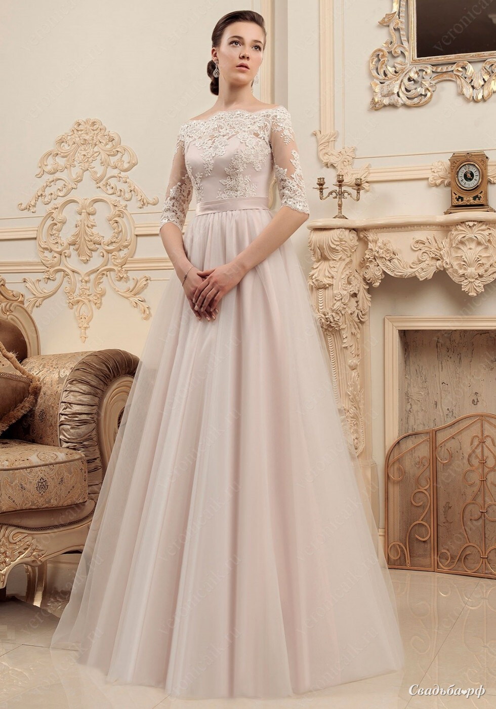 Эта модель платья идеально сочетает в себе легкость юбки и элегантность кружева. В таком платье будет комфортно и легко, а кружевной верх платья в форме лодочки идеально дополнит образ и подчеркнет всю красоту невесты.
