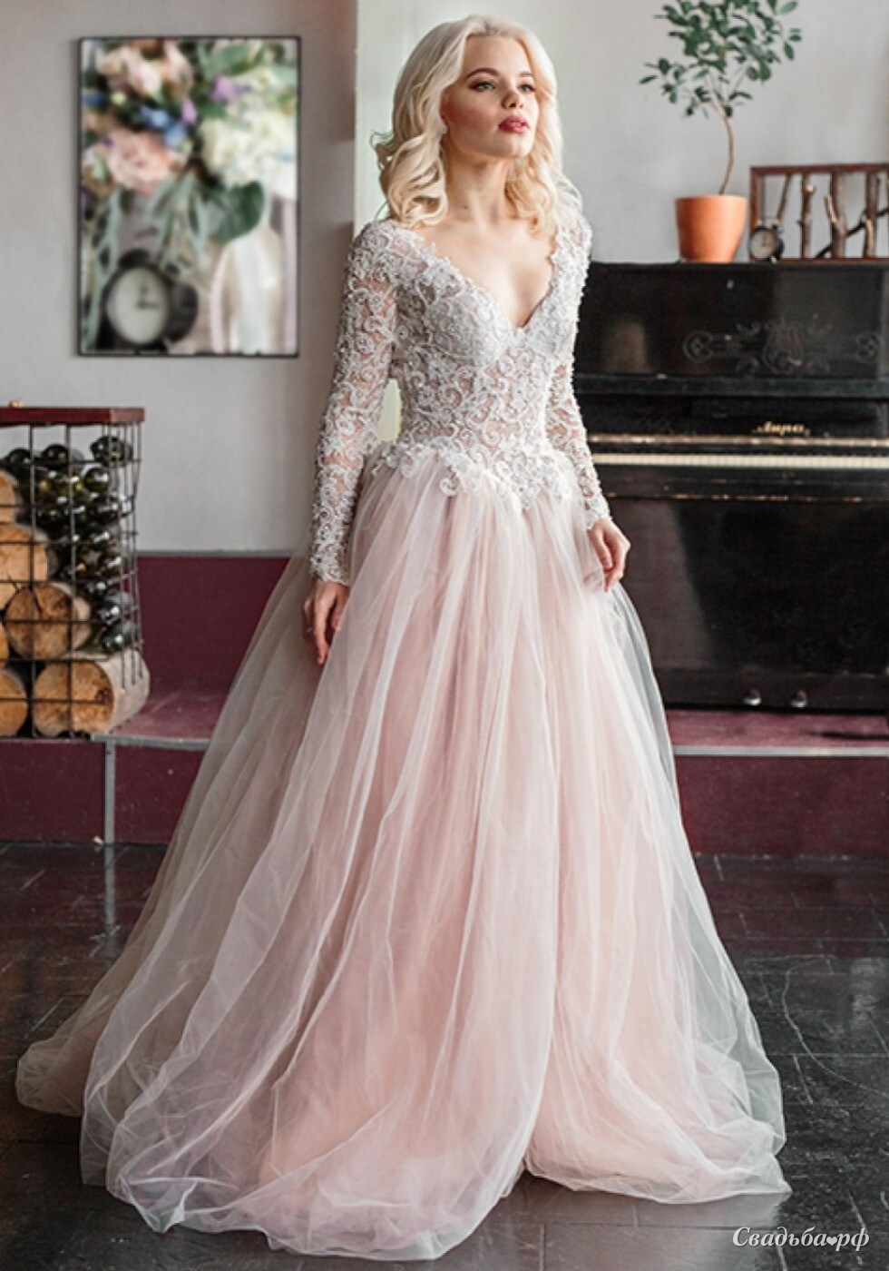 Красивое, модное платье в пудровом цвете с крупным кружевом. Легкое и неповторимое.
