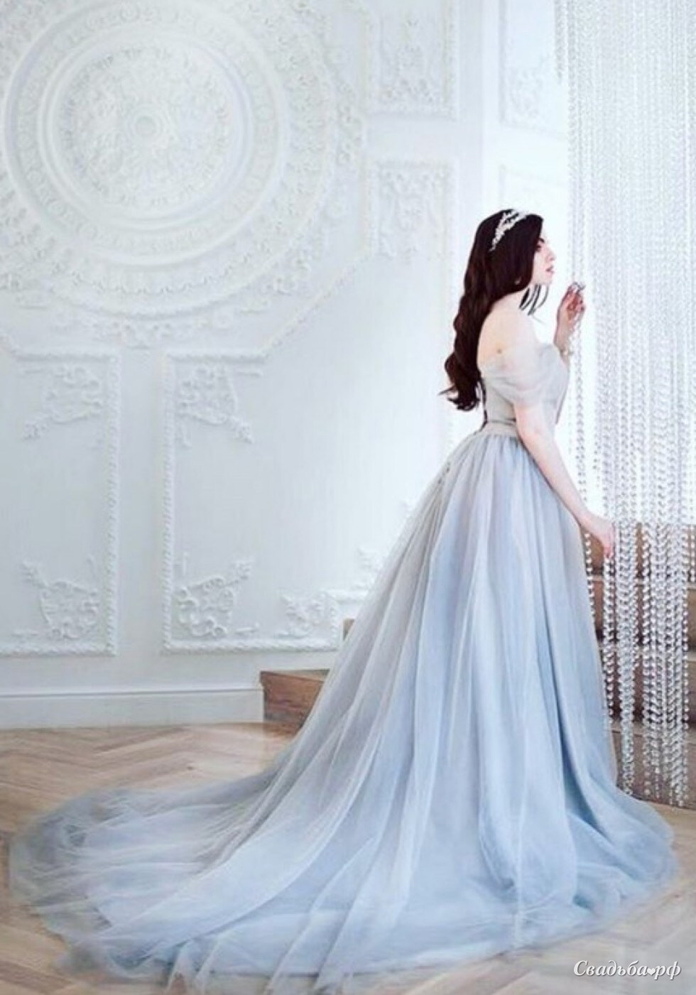 Легкое, воздушное платье модного в этом сезоне серого цвета. Платье на корсете, идеально садится по фигуре. Рукавчик выполнен из легкого, спадающего по рукам фатина.