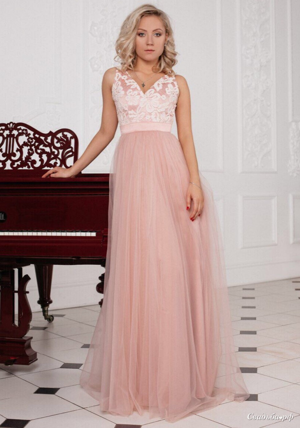 Легкое изящное платье из нежного фатина. Лиф расшит кружевом.