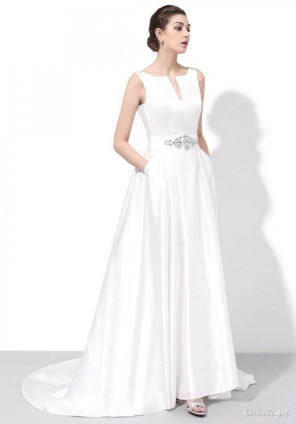 Классическое элегантное платье невесты из благородного атласа. Доступно к примерке в больших размерах.