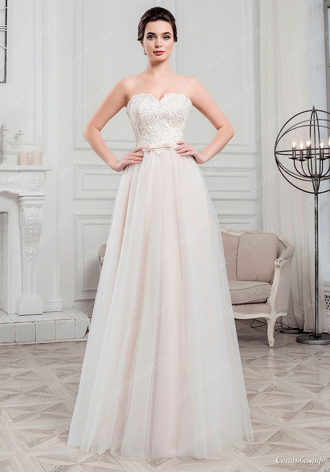 Изящное и нежное платье А-силуэта. Легкая струящаяся юбка выполнена из еврофатина. Подклад платья может быть в цвете пудра или латте, тем самым придает платью необычайно романтичный вид. Корсет платья сделан из плотного и модного в этом сезоне кордового кружева.