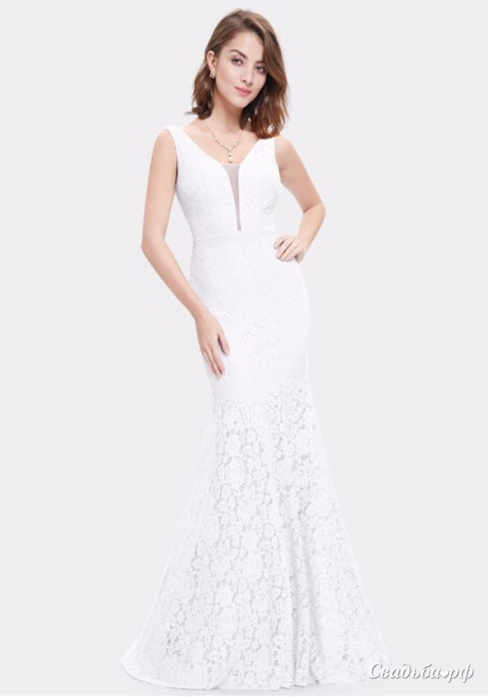 Эффектное платье русалка. В классическом стиле, идеально облегает фигуру и подчеркивает ее, благодаря плотному, но комфортному кружеву.