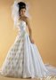 Атласное платье от именитых французских мастеров способно удовлетворить даже самых притязательных модниц. Драпированный корсет и пышная юбка представленного свадебного наряда украшены ручной вышивкой контрастного цвета. Сзади модель дополнена длинным шлейфом. Платье эффектно подчёркивает все женственные изгибы фигуры.