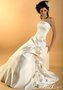 Роскошное свадебное платье от французских дизайнеров создано для самых элегантных невест. Эта модель выполнена из сверкающего атласа и декорирована цветами ручной работы. Изящный корсет с широкой лентой на верхнем крае зрительно увеличивает бюст и выгодно подчёркивает талию. Длинная юбка расширяется к полу.