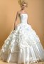 Поистине королевское свадебное платье от лучших французских дизайнеров выполнено из благородного атласа. Драпированный корсет с открытой зоной декольте украшен ручной вышивкой. Невероятно пышная юбка дополнена объёмными сборками. Представленная модель зрительно увеличивает бюст и выгодно подчёркивает талию.