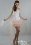 Очаровательное свадебное платье французского производства придётся по душе самым кокетливым и жизнерадостным модницам. Заниженный корсет с открытой зоной декольте украшен ручной вышивкой. Пышная юбочка едва доходит до середины бедра. Наряд позволит вам продемонстрировать свои прекрасные ножки. Модель дополнена полупрозрачным шлейфом.