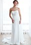 Новая коллекция!!! Платье в стиле ампир с изумительно красивой вышивкой из стекляруса, бисера и декоративных камней. Вышивка проходит по драпированному лифу и окаймляет широкую шнуровку на спинке. Отдельная вышитая композиция расположена на боку. Длинная юбка мягко струится вдоль фигуры и плавно превращается в элегантный шлейф.