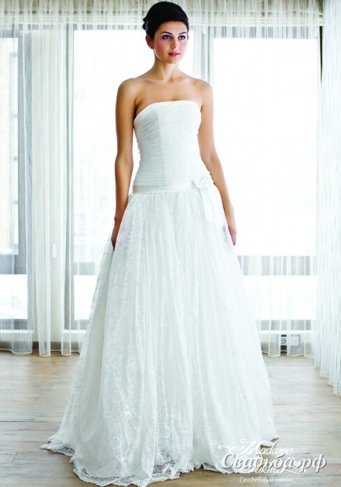 Наша новая коллекция!!! Элегантное платье из тончайшего кружева. Удлинённый строгий корсет с прямым лифом украшен драпировкой и окантован атласной лентой. Заниженная линия талии выделена атласным поясом с бантом. На спинке – функциональная шнуровка атласной лентой. Не очень пышная, но объёмная и лёгкая юбка мягкими волнами струится вдоль фигуры.