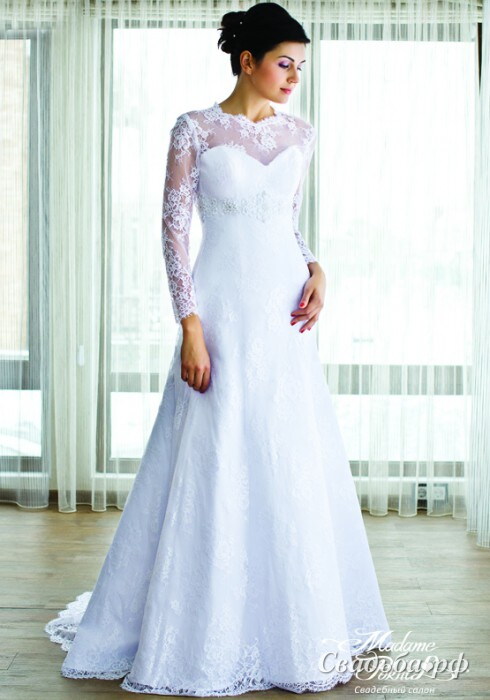 Наша новая коллекция!!! Роскошное платье из французского кружева с длинным рукавом и открытой спиной. Изысканные кружевные узоры особенно эффектно смотрятся на фоне нежной кожи зоны декольте, плеч и рук. Очаровательная вышитая композиция под грудью делает образ ещё более романтичным и нежным. Шлейф превращает платье в наряд для настоящих королев.