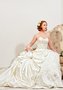 Красивое свадебное платье из атласа с роскошным шлейфом. Корсет с декольте в виде сердца и юбка расшиты золотом и декорированы бисером. Корсет украшен изящной драпировкой и прекрасно гармонирует с пышной юбкой. Юбка декорирована прихватами и украшена изящной вышивкой. Привлекает внимание объемный шлейф.