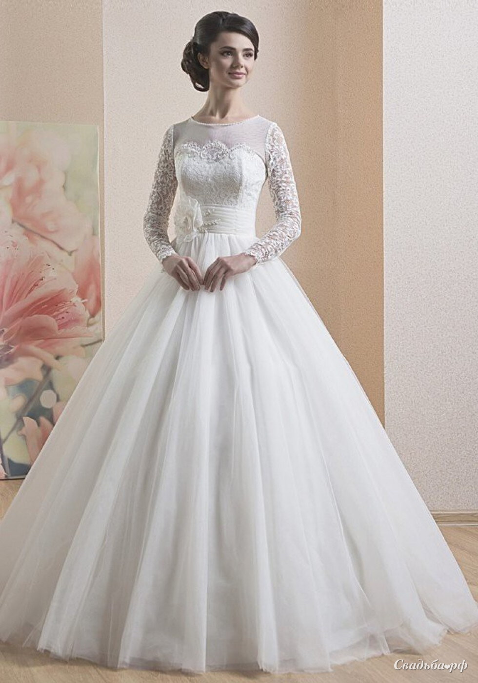 Строгое платье с длинными кружевными рукавами без лишнего блеска.