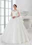 Шикарное свадебное платье с рукавами, обрамленными кружевными элементами. Кружевной корсет расшит стеклярусом, по низу юбки идет кружево.