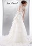 Оригинальное платье, выполненное в помпезном стиле, станет настоящим украшением свадебного торжества и сделает невесту потрясающе красивой. Спинка модели, открыта глубоким V-образным вырезом и оформлена эффектным кружевом. А стильный бант в области поясницы подчеркивает утонченность модели, создавая красивый образ. Юбка платья сделана из нескольких слоев ткани с мягкими переходами. Платье выполнено в нежной молочной гамме.
