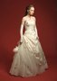 Потрясающее свадебное платье с открытой зоной декольте. Эффектный корсет дополнен ручной вышивкой и объёмными цветами. Постепенно расширяющаяся к полу юбка украшена объёмными складками драпировки, невесомым фатином и кружевными вставками. Представленная модель выгодно подчёркивает все достоинства фигуры невесты.
