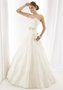 Элегантное свадебное платье А-силуэта подчеркнет изысканный вкус невесты и придаст образу чарующий невинный вид. Прямой корсет с кружевными вставками, имитирующими легкий изгиб выреза, украшен крупной абстрактной композицией, выложенной из камней и блесток. Пышную юбку, из плотной ткани, покрывает ажурная вышивка с нежным растительным орнаментом.