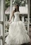 Великолепное свадебное платье с открытой зоной декольте просто создано для самых дерзких невест. Заниженный корсет украшен ручной вышивкой и нежным кружевом по верхнему краю. Пышная юбка с множеством воланов из тончайшей ткани придаёт этому платью невероятную лёгкость. Кроме того, представленная модель эффектно подчёркивает все достоинства фигуры невесты.