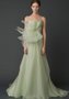 А-силуэтное свадебное платье от мировой законодательницы свадебной моды Веры Ванг красиво облегает фигуру невесты, подчеркивая соблазнительные изгибы ее тела и скрывая недостатки. Простота платья компенсируется воздушной отделкой. Лиф со строгими геометрическими вырезами отлично поддерживает грудь, линия талии подчеркнута тоненьким пояском с хаотичными выпусками из легкой ткани.