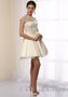В это кокетливое платье влюбляешься с первого взгляда. Очаровательная модель от российского дизайнера Татьяны Шароновой создано для самых жизнерадостных модниц. Полупрозрачная вставка на груди и такие же плечики придают образу лёгкость. Талия подчёркнута атласным поясом с розой на боку. Пышная юбочка с ажурным краем едва доходит до середины бедра.