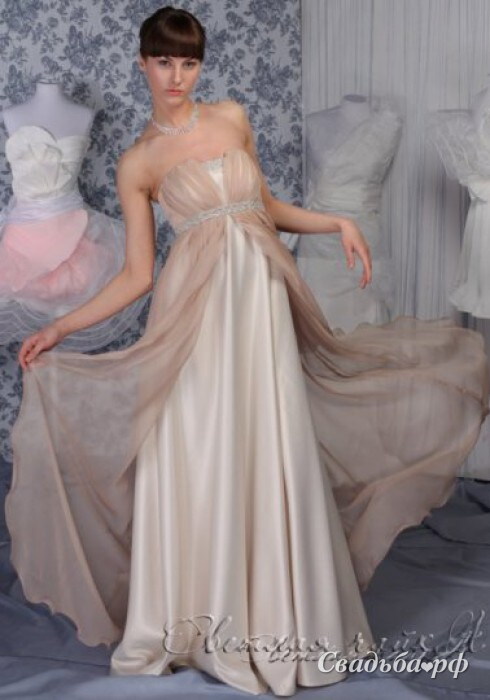 Нежная, необычная, легкая модель длинного свадебного платья в греческом стиле. Красиво подчеркнута линия груди, нежно расшитым пояском. Восхищает декор бретелей, которые можно трансформировать. Юбка лаконичная, атласная, сверху украшена разрезом тонкого, летящего шифона.